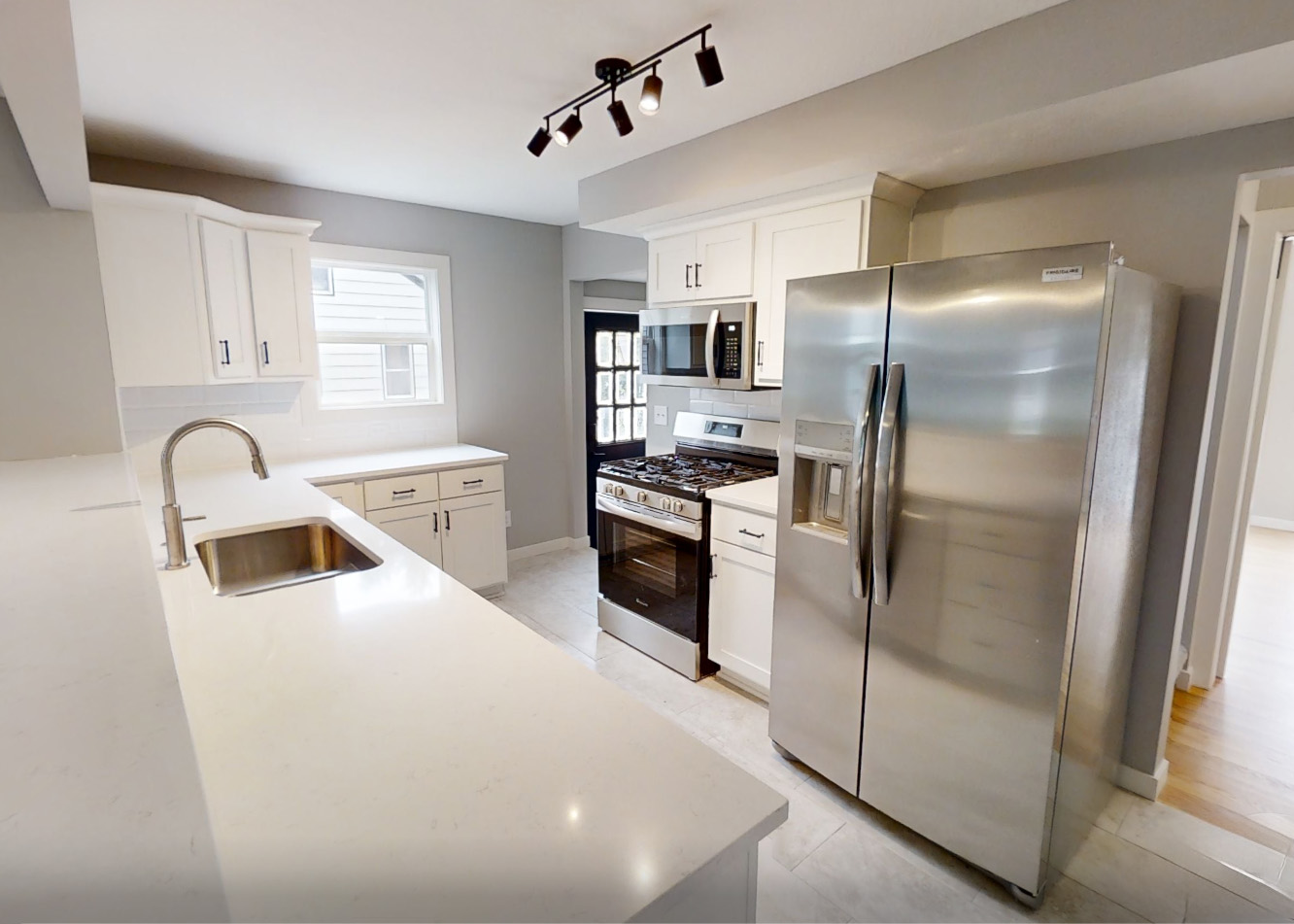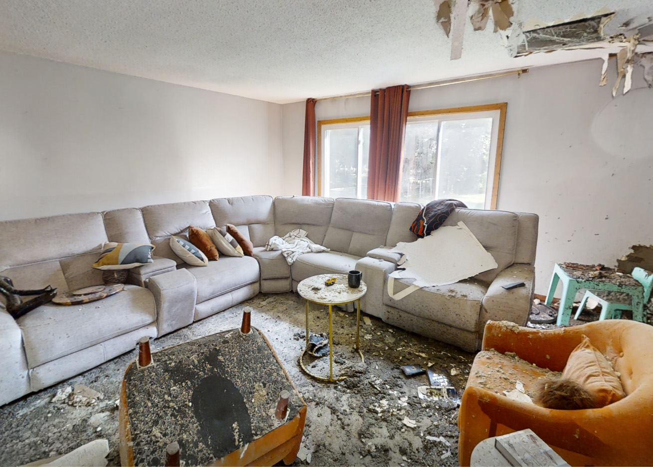 A garage fire spread rapidly through this Crystal, MN home, causing extensive fire, smoke, and water damage throughout the structure. Our team performed a full home restoration, including gutting the structure to the studs, rebuilding the roof and garage, and creating a new open-concept layout during reconstruction.
